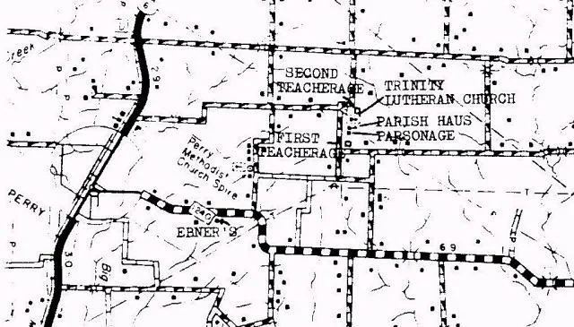 The first missionary-at-large to be called was John J. Trinklein. He was to receive a salary of $40.00 per month plus his living expenses. In his memoirs, he stated that he actually received $25.00 per month. He spent three to five nights a week on a train, traveling up and down the length of the Houston & Texas Central Railroad. The president of the railroad gave Rev. Trinklein a free pass because he knew towns usually formed around church congregations. It was known that Rev. Trinklein was a man of extraordinary skills and possessed great stamina and passion for his calling. These two attributes served him well when he began his journey to Texas where he braved cold, storm, floods, and traveled on virtually impassible or nonexistent roads. He came from Frankenmuth, Michigan on August 23, 1882. Initially he was assigned to work out of Hockley, about 35 miles west of Houston. There he made the home of Mr. and Mrs. Jacob Scherer his base and covered the rural areas to the west, northwest, and southwest of Houston. By 1885 Rev. Trinklein had reached out to the scattered Lutheran groups in over a dozen different areas of Texas, including a small gathering of Lutherans near Riesel, then known as Friedens Au, which translates to Meadow or Prairie of Peace. Rev. Trinklein first arrived in Perry, Texas on a cold December 2, 1882. He spent the next three days busily searching out prospects in the Perry area to invite to a church service at the home of Mr. George (Gottfried) Ebner on December 5, 1882. On this date the first divine services were held in the Ebner home. About fifty people sat in the two large front rooms of the house. The liturgy was sung by the pastor and responded to by the congregation. Church services continued to be held in the Ebner house till May 1883. During this time, arrangements for building the first church were taken care of by the members. The name of this church was TRINITY EVANGELICAL LUTHERAN CHURCH AT FRIEDENS AU.